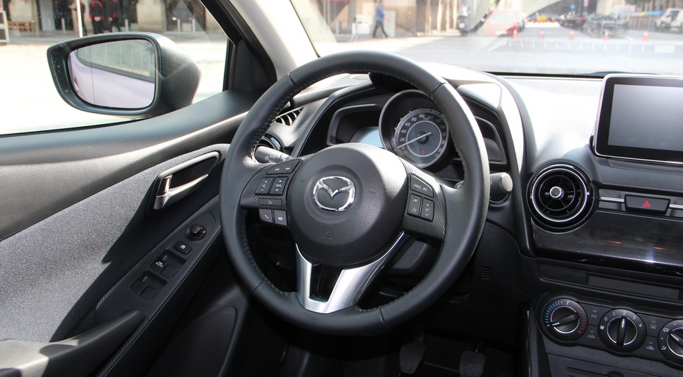 Неудивительно, что более всего японцы в Европе ставят на турбодизель SkyActiv 1.5 D (105 л.с., 250 Нм). За счет целого комплекса инноваций он отличается низким потреблением топлива (от 3,4 л/100 км) и более высоким крутящим моментом, что позволяет ему тратить всего 10,1 с. при разгоне до 100 км/ч. Нам поездить на дизеле не довелось, зато были опробованы в деле два бензиновых мотора — базовый в 75 л.с. и средний по мощности 90-сильный.
