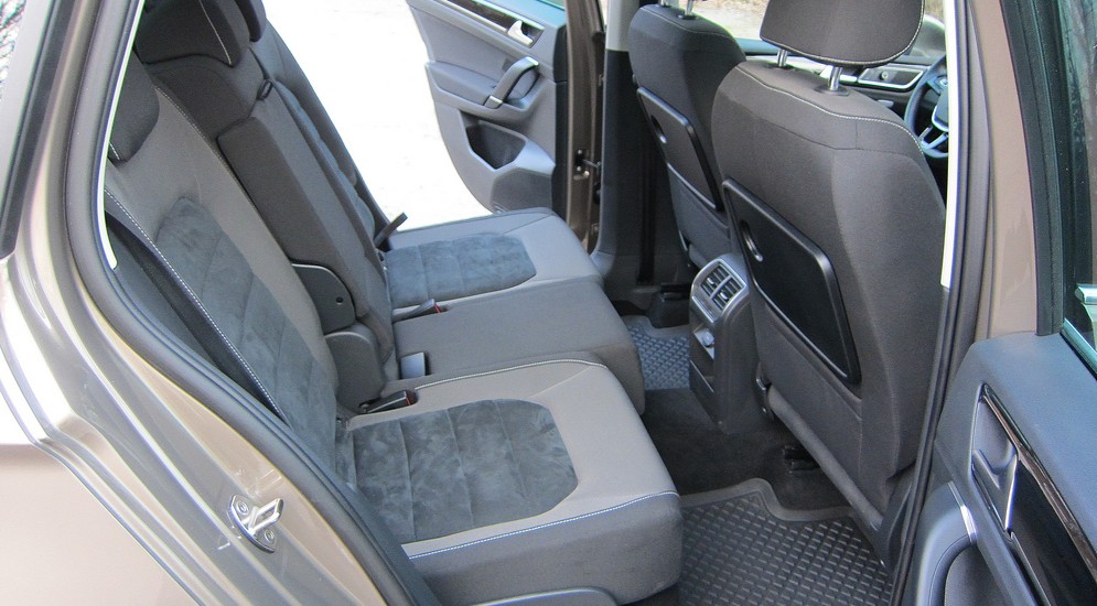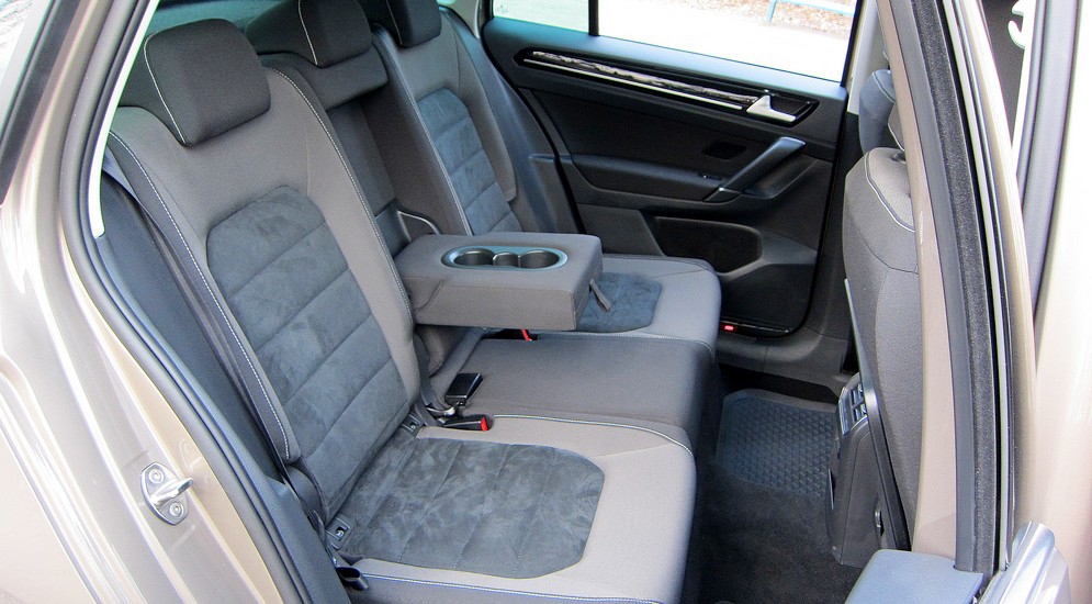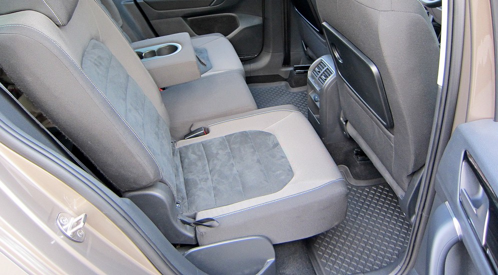 Как уже было сказано выше, на «галерке» Sportsvan места поболее, чем в хэтчбеке и даже универсале Golf. Помимо упомянутого «лег-рума» увеличилось и пространство над головами. Раздельные (в пропорции 60:40) задние кресла можно двигать вперед-назад на 18 см, а также отрегулировать угол наклона спинки. Откидные столики, отдельные воздуховоды, широченный центральный подлокотник и розетка на 12 вольт добавляют уюта, а слегка портит идиллию крупноватый для переднеприводной машины тоннель.