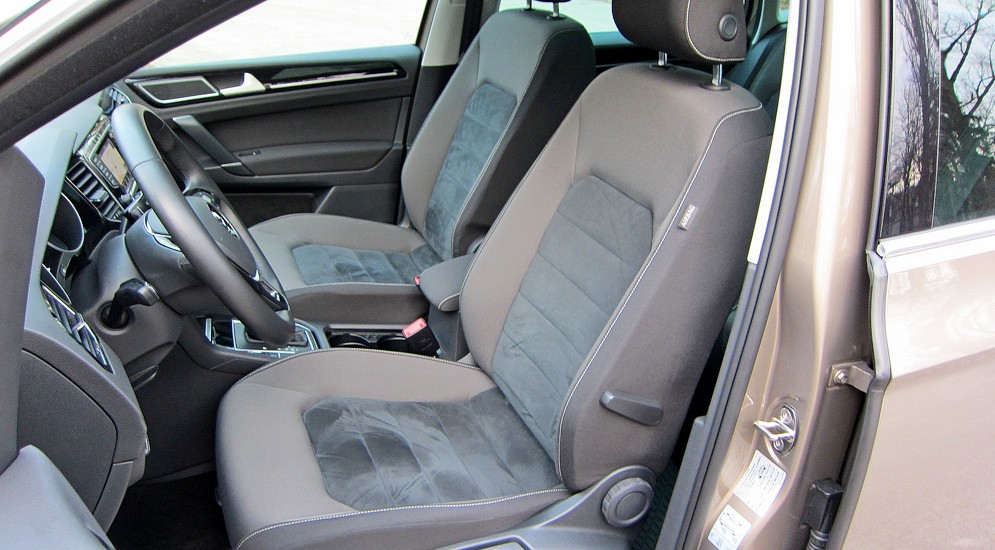 Сиденья – типично фольксвагеновские: несколько жестковатые, но хорошо заботятся о здоровье вашей спины и удобстве пятой точки. Боковая поддержка не слишком навязчива, а дополнительный «держак» тел водителя и пассажиров достигается за счет комбинированной обивки с центральной частью из алькантары.