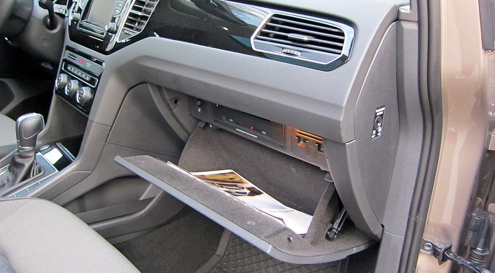 Благодаря сравнительно низкой погрузочной высоте (652 мм) и удобному проему, пользоваться багажным отсеком Golf Sportsvan очень удобно. Под двухуровневым полом – дорожный инструмент и полноразмерная запаска на стальном диске. Посетовать можно на отсутствие (даже в списке опций) электрического управления пятой дверью: приходится руками тянуть фирменную ручку-эмблему (не всегда чистую), под которой, кстати, спрятана камера заднего вида.