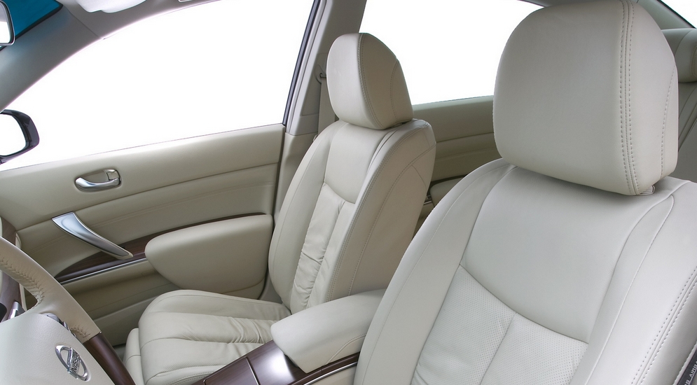Радиаторная решетка и молдинги Teana нового поколения сверкают серебрянкой, а в боковые зеркала вмонтированы повторители поворота: между Infiniti M и Nissan Teana практически не осталось внешних различий. Только шильды на кузове не дадут спутать бизнес- и люкс-исполнение ниссановского Е-класса. Teana выкрашивают в те же цвета, что и прошлое поколение, плюс два новых оттенка: Deep Amethyst Gray (серый) и Framboise Red (красный). Второй цвет Nissan особенно удался: скорее всего, он и будет самым популярным…