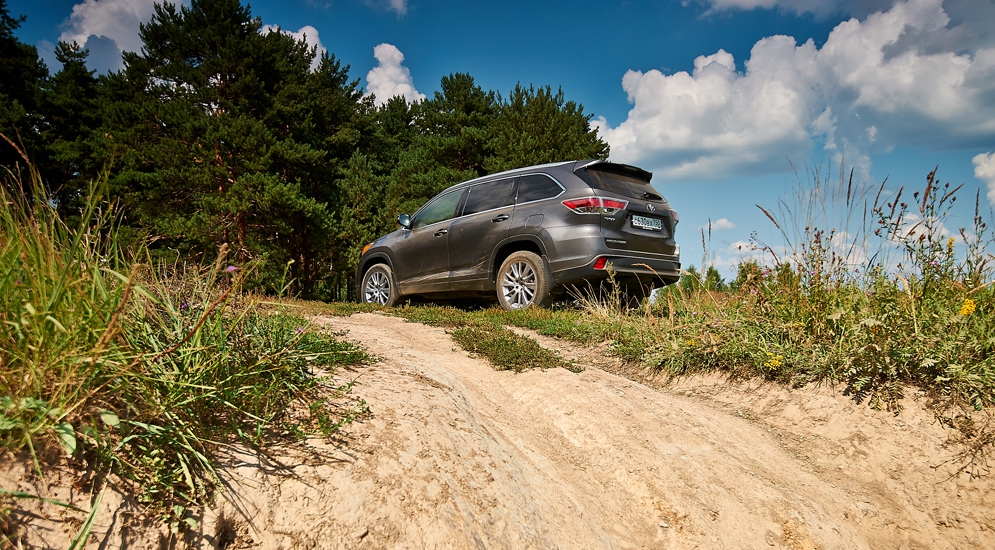 Highlander оказывается на вершине горки настолько легко и непринужденно, что фотограф просит повторить трюк еще пару-тройку раз. Без проблем! А вот на тот изогнутый склон с ямой посередине заедем? Да легко! А по песочку? А пожалуйста! В "Хайлендере" обнаружились все необходимые для офф-роуда качества: неплохая геометрическая проходимость, адекватно настроенная система полного привода, удобное управление тягой и солидный этой тяги запас.