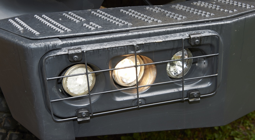 Дверная ручка выше макушки, пол кабины на уровне груди, и забираться на водительское место приходится по трем ступенькам, нижняя из которых висит на гибком металлическом тросе. Такое решение более выгодно с точки зрения живучести – иностранные производители зачастую предлагают либо жесткие складные металлические конструкции, либо ступеньку на резиновой петле – первые легко сломать на сложном рельефе, а резина просто не выдерживает наших морозов.
