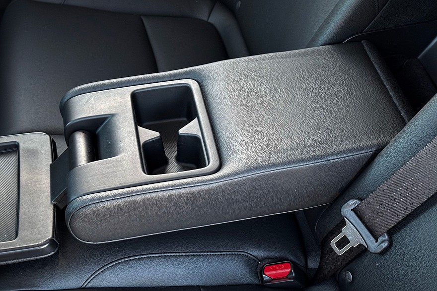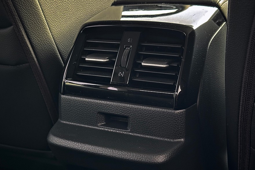 Сидеть удобно – у дивана удачный угол наклона спинки и подушки, уютные подголовники. Здесь буквально не к чему придраться: есть дефлекторы вентиляции, пара слотов USB и одна штука из разряда «ну почему так не делают все остальные?». Откидной подлокотник в спинке дивана раскладывается в настоящий… столик. Довольно большой и удобный, с прорезиненной нескользящей поверхностью.