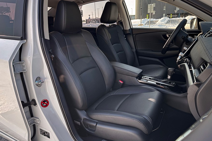 Выглядит Crider неплохо – можно даже сказать, солидно. По крайней мере, уж точно не хуже, чем какая-нибудь Camry. У машины неплохие пропорции, разве что маленькие 16-дюймовые колёса дешевят облик. Световые приборы – диодные, даже фонари, что нетипично для «японцев». И лишь противотуманные фары щеголяют галогеновыми лампочками. Впрочем, хорошо, что они вообще есть. Цветов кузова всего два – чёрный и белый. Как деловой костюм, который бывает только в двух версиях: «очень серьёзно» и «максимально серьёзно».