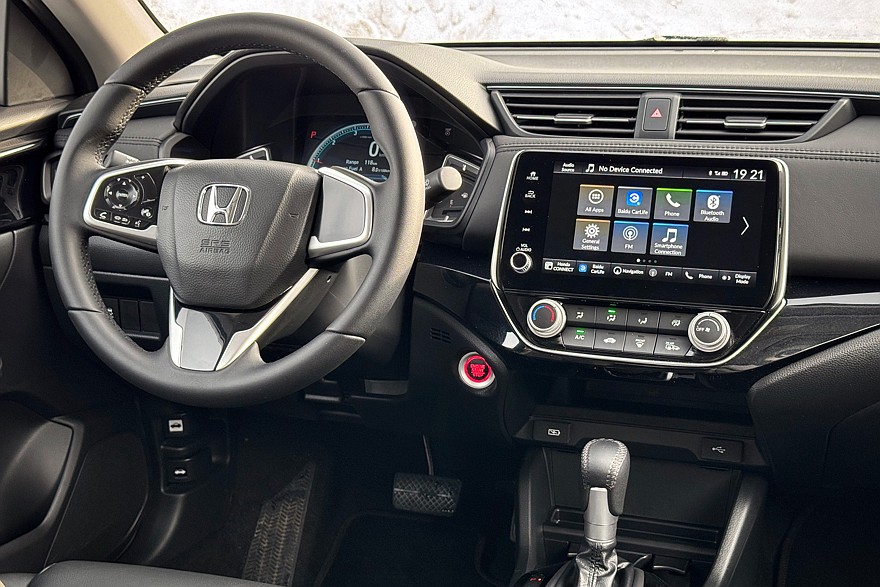 И точно так же, как в кроссоверах, в мультимедийной системе Honda Connect 3.0 нет ни Apple CarPlay, ни Android Auto, ни русского языка. Благо интерфейс здесь максимально дружелюбен и прост в использовании. Вернуться на шаг назад или в главное меню можно нажатием отдельных кнопок, для регулировки громкости есть удобная рукоятка. На центральной консоли есть пара разъёмов USB, два подстаканника и небольшая полочка.